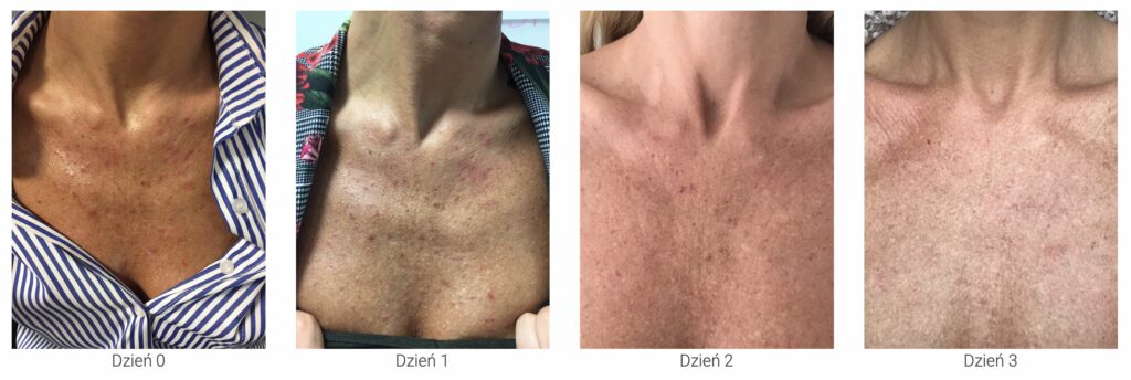 Zdjęcia zrobione przed zastosowaniem Alaceum i trzy dni od pierwszej aplikacji.